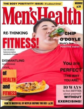 Men's Health says this is all a part of a new initiative to "dismantle traditional western cis-male heteronormative patriarchal concepts of what health and fitness actually look like." They hope to be featuring many more overweight cover models in the coming months. Articles in this next edition will include expert advice on how to finish an entire plate of nachos without using your hands, and how to become an expert at Super Smash Bros. for Nintendo Switch with only 5 minutes of training per day.
