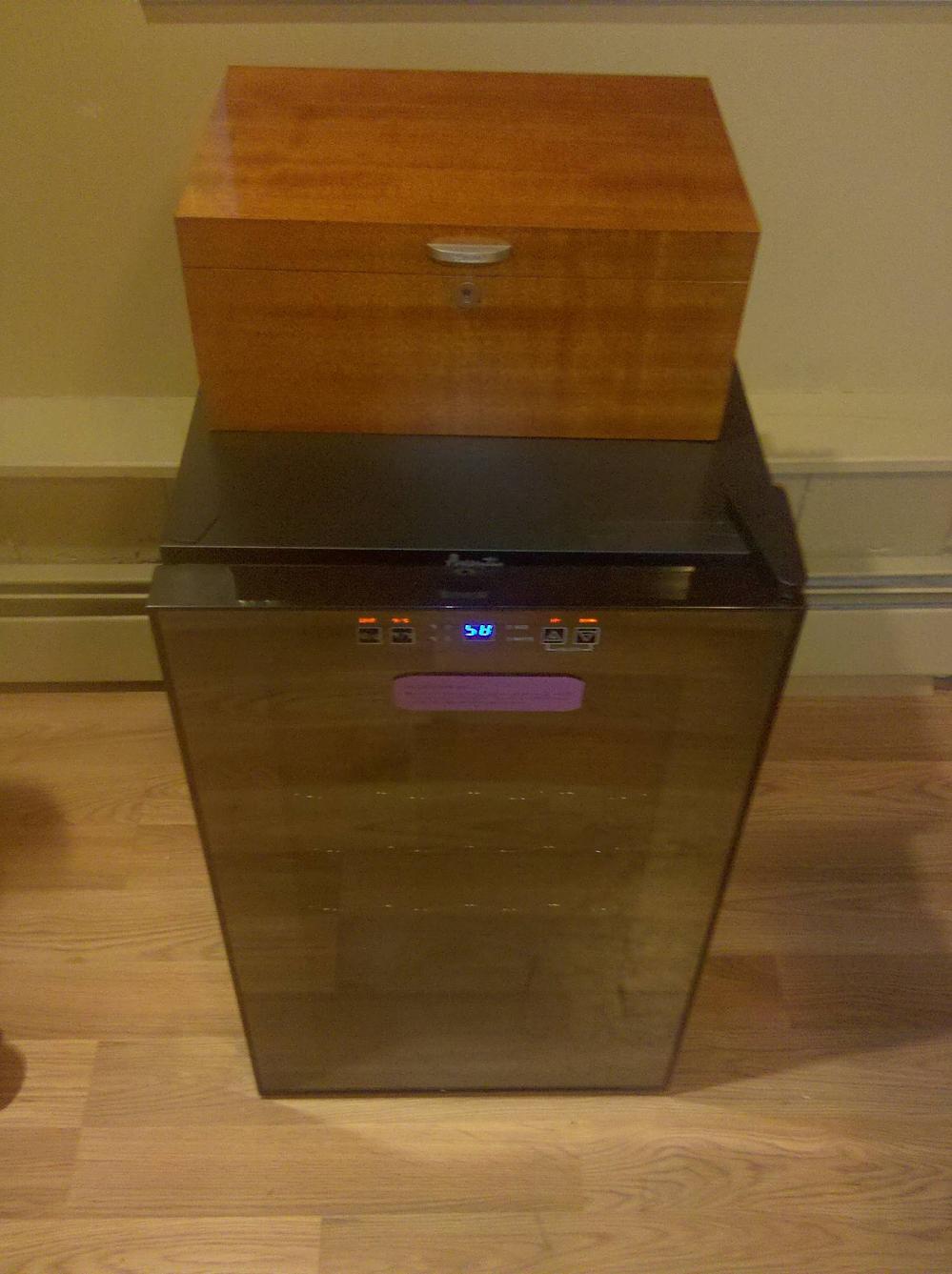 My new Avanti. Not much in it, couple empty boxes, one with some singles and a unopened box of La Verite. 1.5lbs of Shilala Beads. Still need fan, temp control unit and Chasden cocobolo drawers and of course CIGARS!!!!