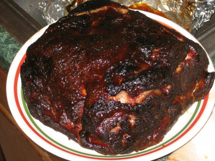 slathered it with Sweet Baby Ray's and broiled it for another few minutes. Pulled it with a couple forks