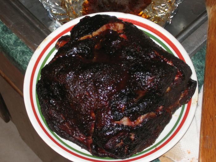 OK, let there be meat. The picnic has an hour at least to go, don't know, I have no thermometer.