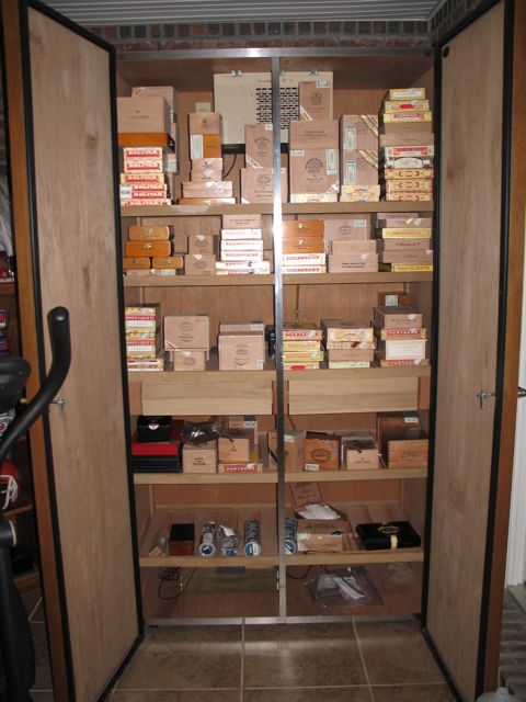 The top two shelves are boxes in waiting. The third from the top is stuff I am currently smoking except for the Cazzies and Dukes. The next one down is mostly Tat stuff and a couple of DPG boxes. The next one down has some Opus, Anejo stuff, my Snus. The bottom has a bag of my wife's stuff. The left singles drawer is NCs and has trays to keep it somewhat organized. The right singles draw has no sense of order at all!!!