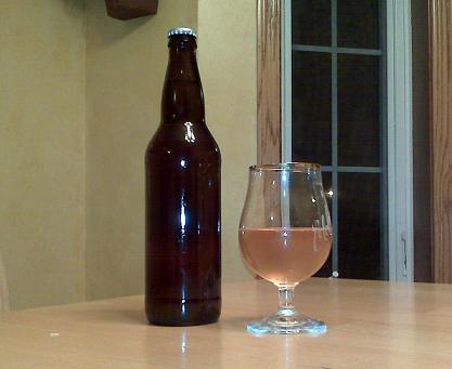 Did my first bottling tonight. Here is my first bottle (22 oz) and a glass of uncarbonated beer. It's a cream ale, so I think it came out a little cloudier than it should have.