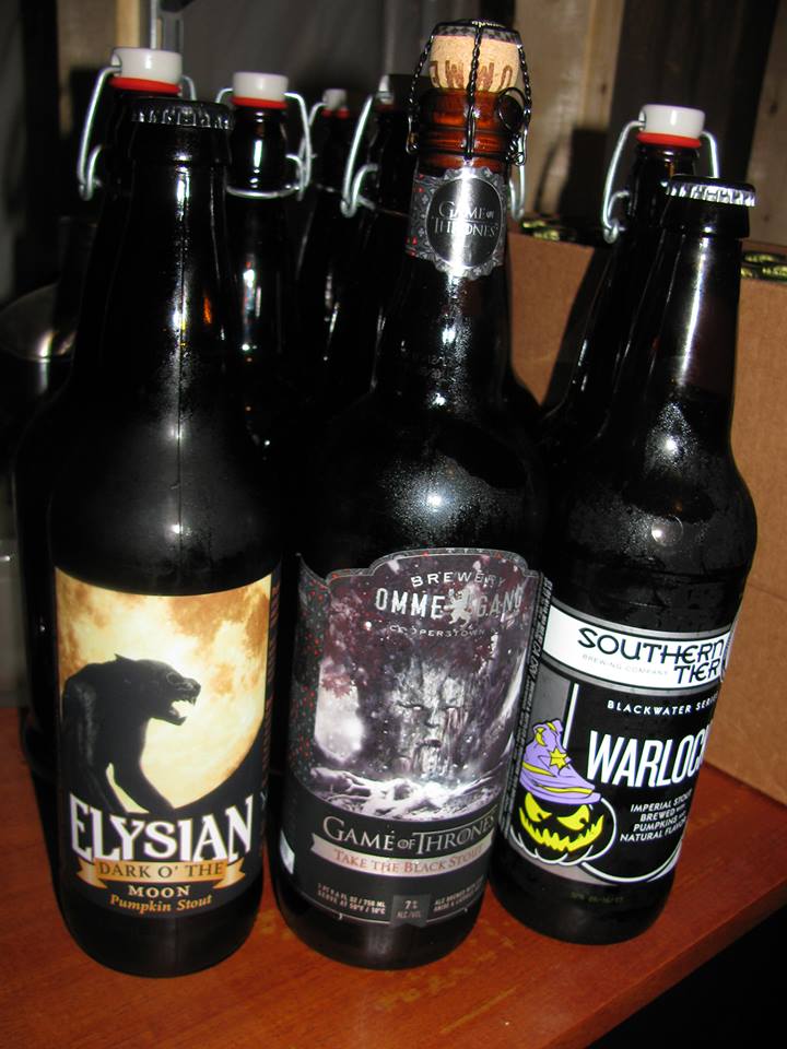 This is what I brought back from vacation: Angry Orchard Apple Ginger Hard Cider, SMB Black Bear Ale, SMB Tuckaleechee Porter, SMB Windy Gap Wheat, SMB Valas Helles, Ayinger Celebrator Doppelbock, O'Fallon Pumpkin Beer, Xingu Black Beer, North Coast Scrimshaw, Hornsby's Amber Draft Hard Cider.