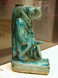 Taweret was depicted as a composite of all the things the Egyptians feared, the major part of her being hippopotamus, with the arms and legs of a lioness, and with the back of a crocodile. On occasion, later, rather than having a crocodile back, she was seen as having a separate, small crocodile resting on her back, which was thus interpreted as Sobek, the crocodile-god, and said to be her consort. Taweret became seen, very early in Egyptian history, as a deity of protection in pregnancy and childbirth.
