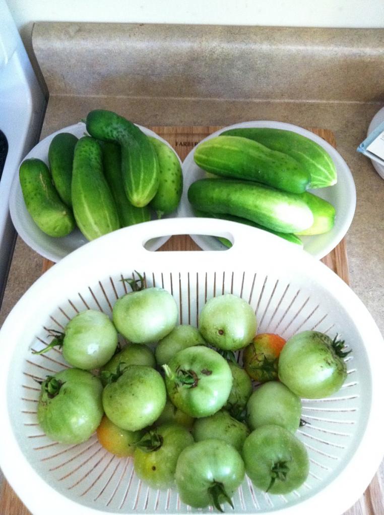 I did get some cucumbers and tomatoes today. Heat is killing my tomatoes so I picked them green so id have a chance to use them before they split.