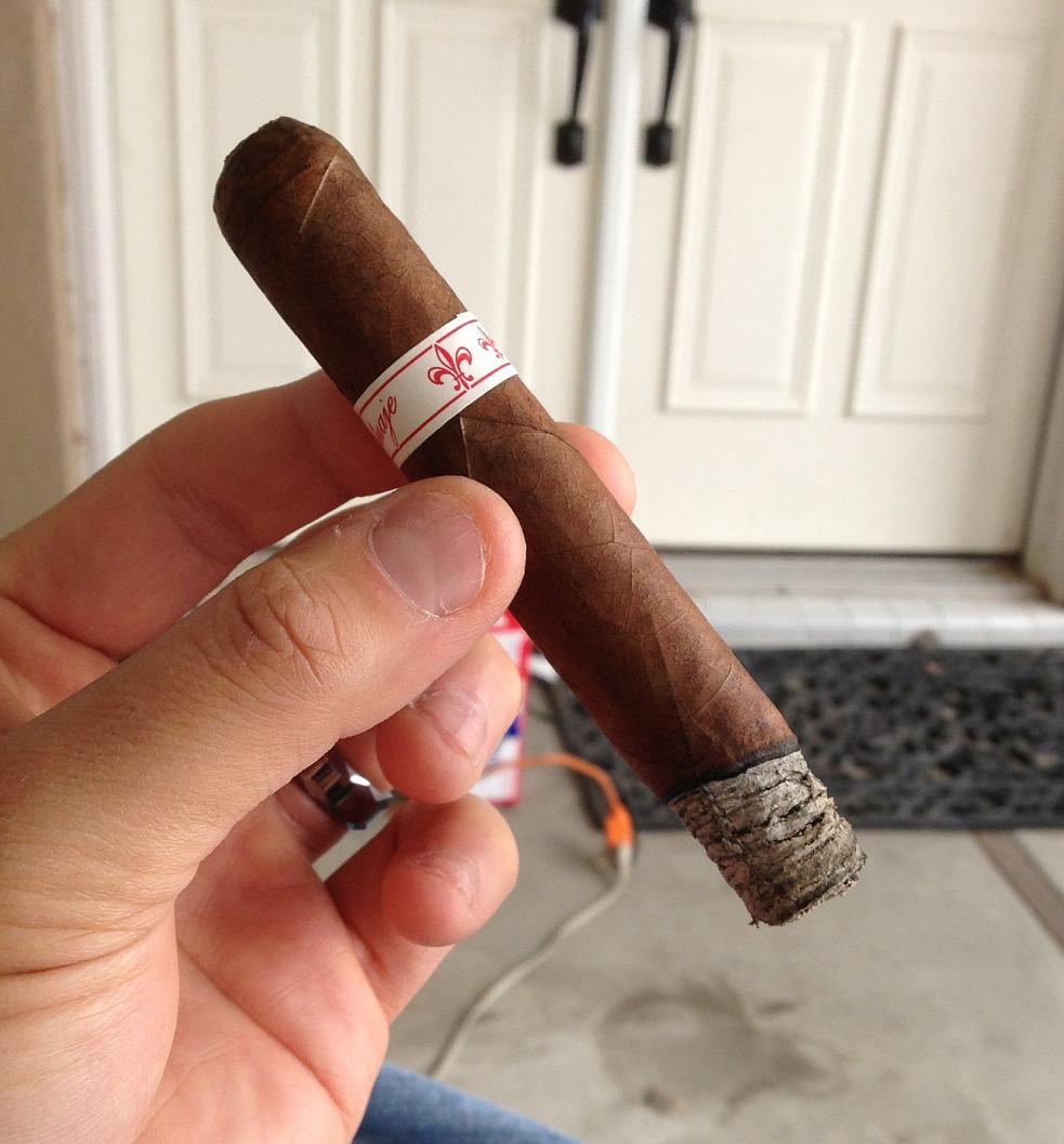 Sitting in the garage under the patio heater with a Orinioco 1613 SBC Robusto