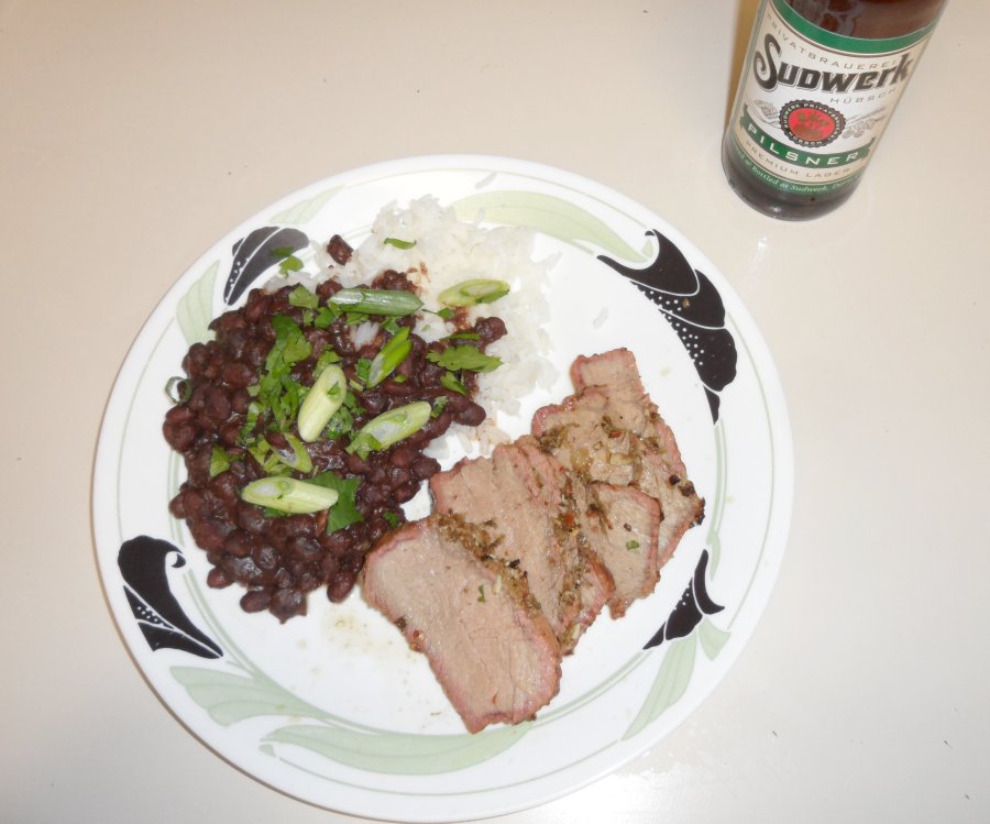 Fixed with some killer Cuban black beans, white rice and a great, fresh, German style pilsner from the local brewery: