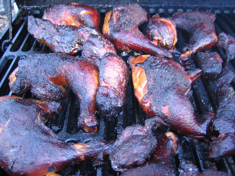 I just took a giant bag of leg quarters out of the freezer, no sense in smoking em much, the skin on chicken just kills
