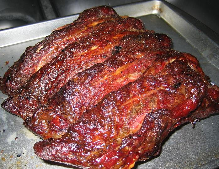 After finishing in the oven and glazing with some BBQ sauce (mix of Snkbyt's and another of my faves).