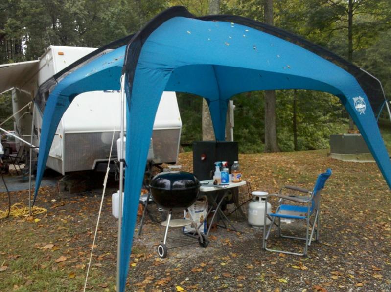 When I'm doing serious cooking, I put up my smoke shack tent... keeps the sun off of my drink.