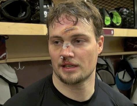 Man what a trooper! Gets hit in the face with the puck but returns and scores a goal