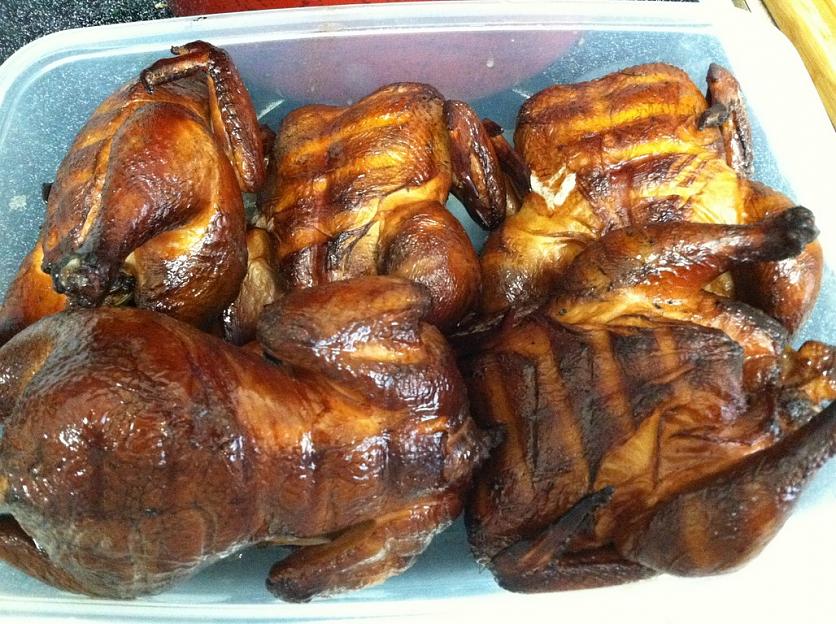 sup everyone, havent stopped in here in quite some time but figured I would say hi. I havent fired up the smoker in awhile but did this past weekend for the Bama / UGA game. brined 5 cornish hens overnight (salt, pepper, onion and garlic powders, rosemary, thyme, crushed red pepper, bay leaves, mustard seeds and coriander seeds) and then hickory smoked about 5 hours. Turned out fantastic.