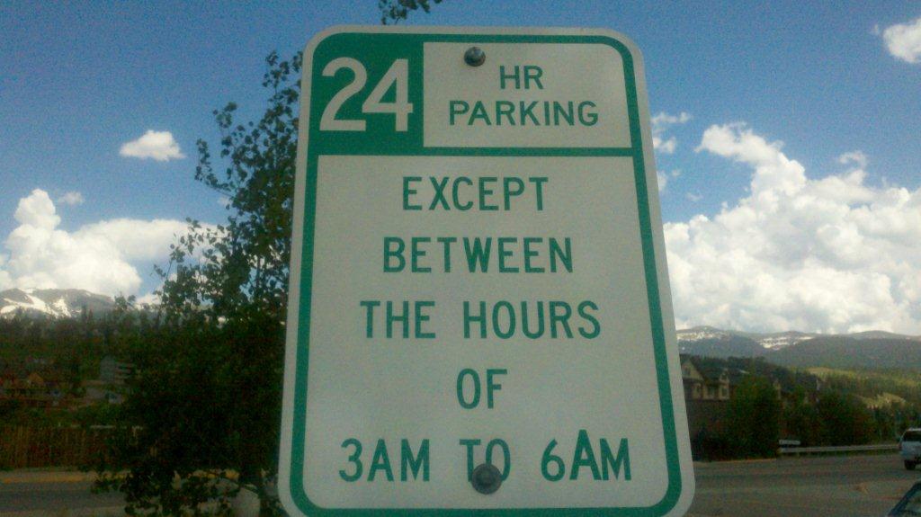 Small town logic (in Granby, CO). And I love how the A in 6 AM is is different font. (actual sign I took a picture of)