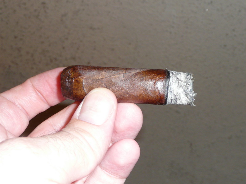 The first couple of puffs were so spicy it almost felt acidic on the lips. This cigar started very strong and bitter. After about .5 inch it mellowed considerably and had some nice earthy flavors. Generally it was a well constructed and tasty cigar. I did a couple little touch ups but they weren't really necessary.
