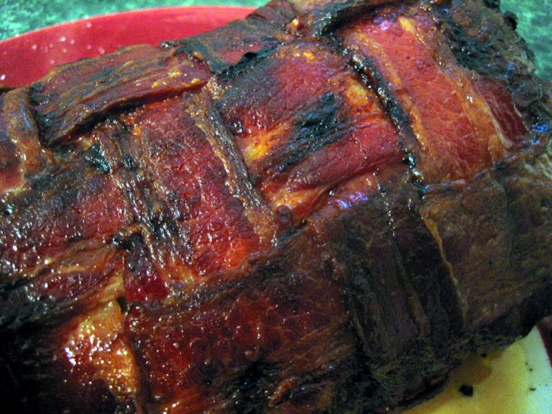 You end up weaving with warm-cool bacon and wrapping the fattie with a chilled "cloth" of bacon. Chill the fatie before wrapping further, too.