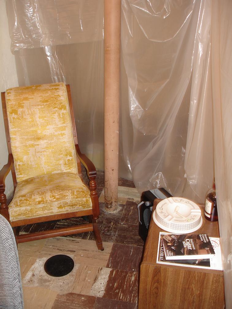 I installed a bathroom exhaust fan and vented it similar to how you would vent a clothes dryer. I purchased a couple roles of thick guage plastic from the painting department at Lowe's. I used a cable/romex stapler to secure everything to the bottom of the floor joists (to keep smoke from going upstairs) and then also hung the plastic from floor to ceiling (to keep the smoke from getting to the rest of the basement).