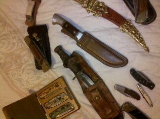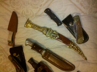 The 2 top ones look like stage coach bayonetts. The have a coach gun that has springloaded bayonettes on them that are cool if you find an origginal there about 10-15Gs.