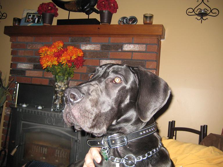 :-) He is such a loving dog, who just enjoys the company of people. He has successfully scared one pizza delivery guy (little did he know that his back end was wagging with excitement