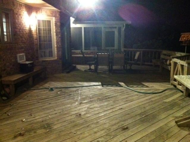 Ok, here's a couple of pics...it's night, but it gives you a good idea. Yes, it's still in need of a good cleaning and when I put the new deck in, the hose is going under the deck and on a hose reel outside of the freaking deck.