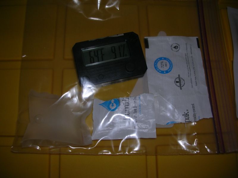 Pack #1 was down to 8.6g this morning so I tossed it in a bag with a hygometer. Will check readings this evening.
