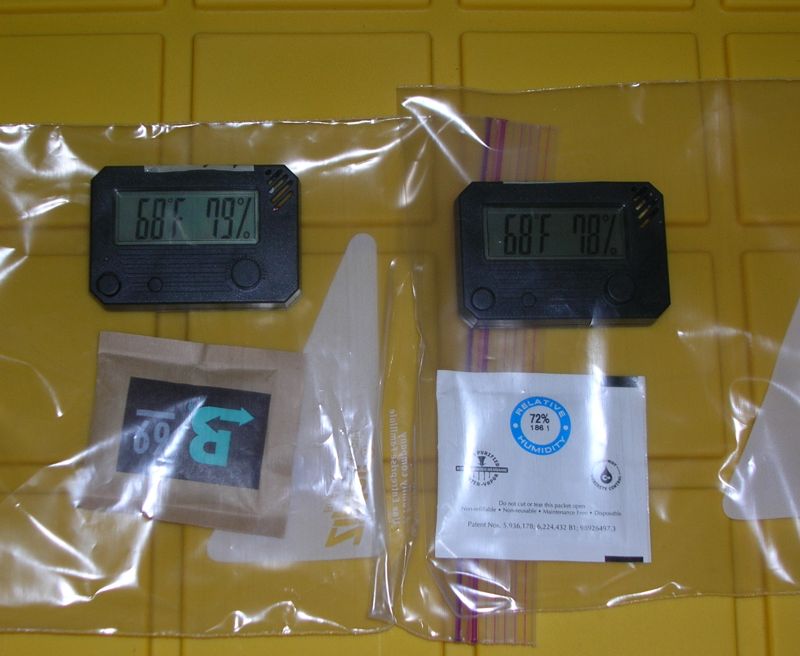 Hmmm , I think we need to examine the weight on a given brand new pack , and then recharge a used one to the same weight , then do a side by side and see where they level out at with calibrated hygros. Im starting to think that recharging them wont keep the setpoint the same.
