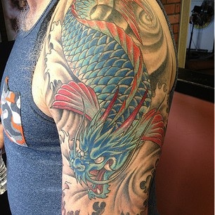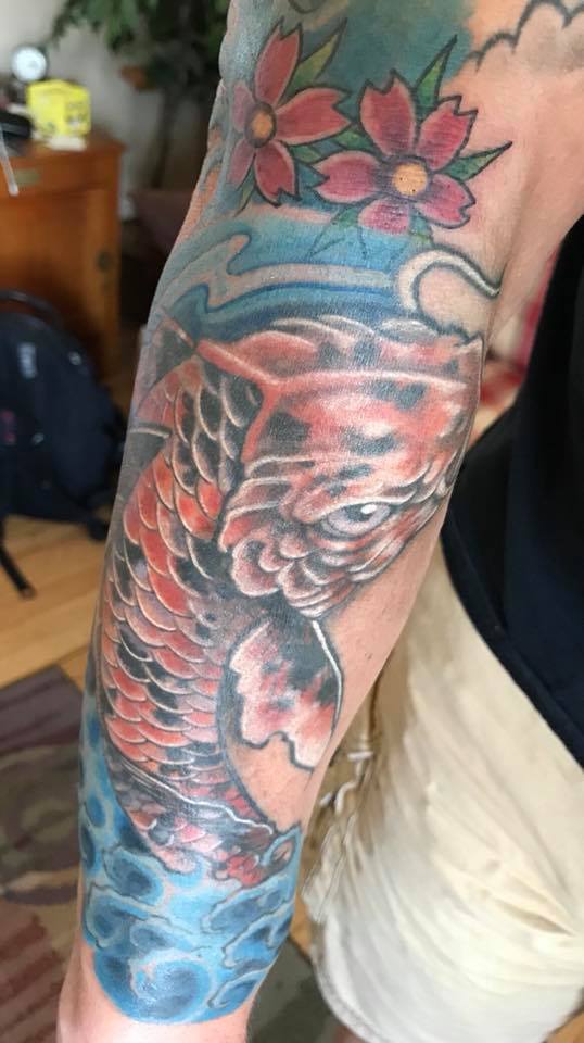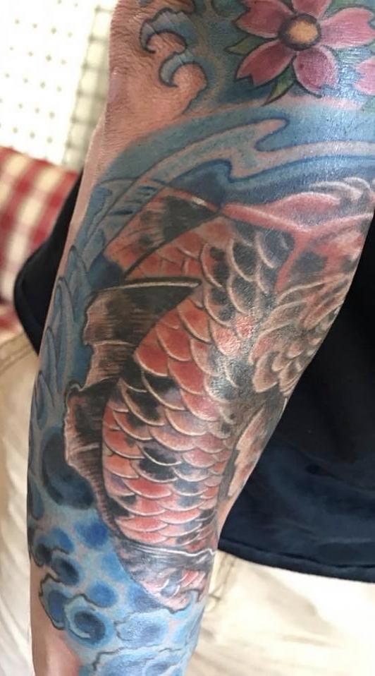 Started my latest piece. Nice progress for a first session. Will get more color shading and filll in the inside of forearm. Also tie it into my upper arm for a complete sleeve.