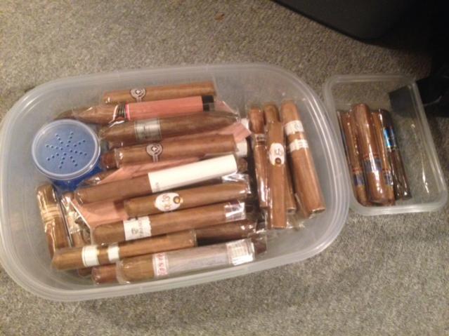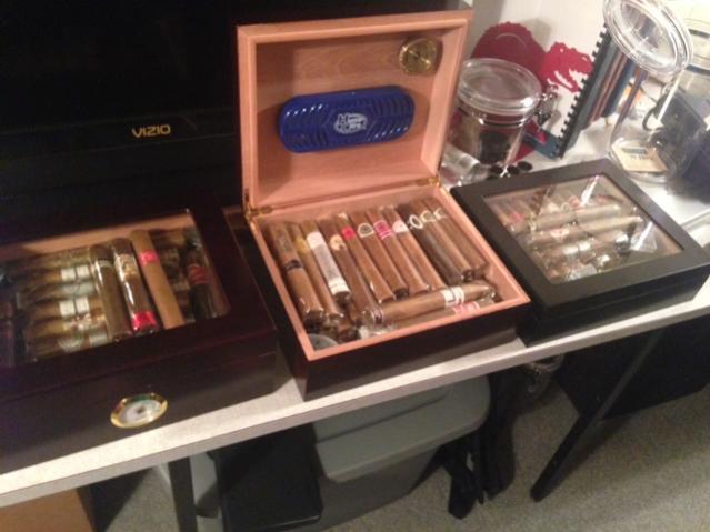 Here is what I got so far. I got all of these Humis before joining the asylum or else I probably would have gotten a coolidor. ALWAYS GO BIGGER. one 25 for the desk and then two 50's plus the tupperware.