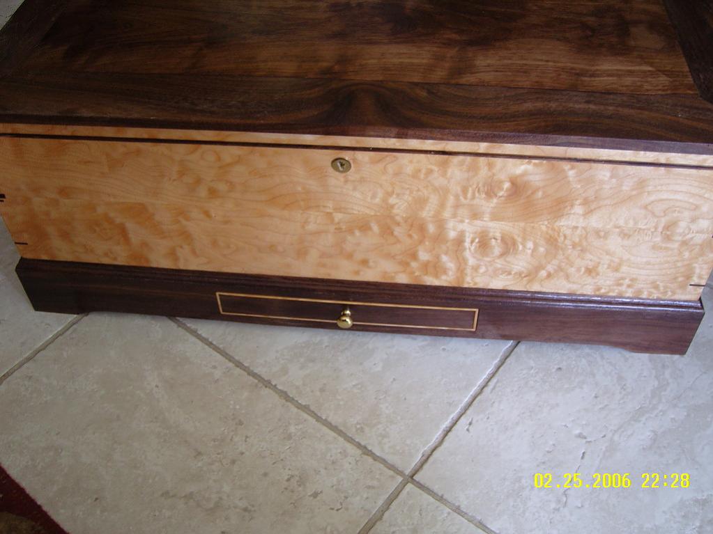 I like the knot on the left side.... it looks like a bullet and then the curl on the walnut looks like the shock waves.... I've had that piece of wood laying around the shop for a couple years.... knowing it would look good with something.... Whatcha Think?