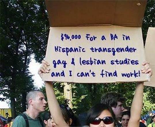 This one of the big problems IMO. I want to be a master of tiddly-winks, heck I want PHD in it. Woohooo! Congrats to me I graduated with a 4.0 and $200,000 of student loan debt and now I want the job I'm ENTITLED to making $500,000/year! Who cares what jobs are in demand I LOVE tiddly-winks.