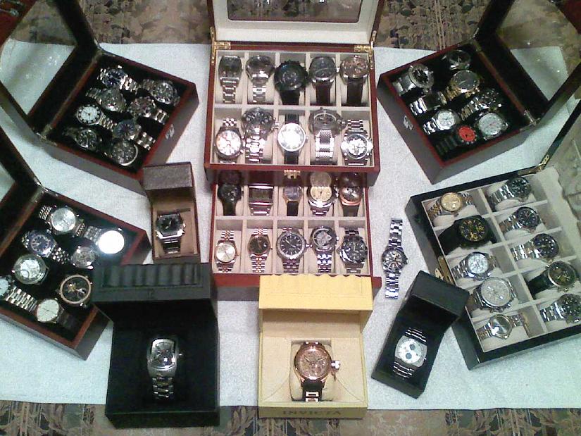 While running around yesterday I ran into a deal at Bed Bath and Beyond where they had 8 piece watch boxes with glass top and lock for under 15 bucks. I picked up a few and while they arn't absolute top quality, they are extreamly nice for 15 bucks. Leather bound and will hold watches up to 43-44mm preaty easily.