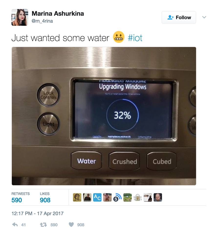 I got no use for a 'connected' refrigerator...but if I had one, I don't think this would cause a rant...my house has a faucet in the same room as my refrigerator