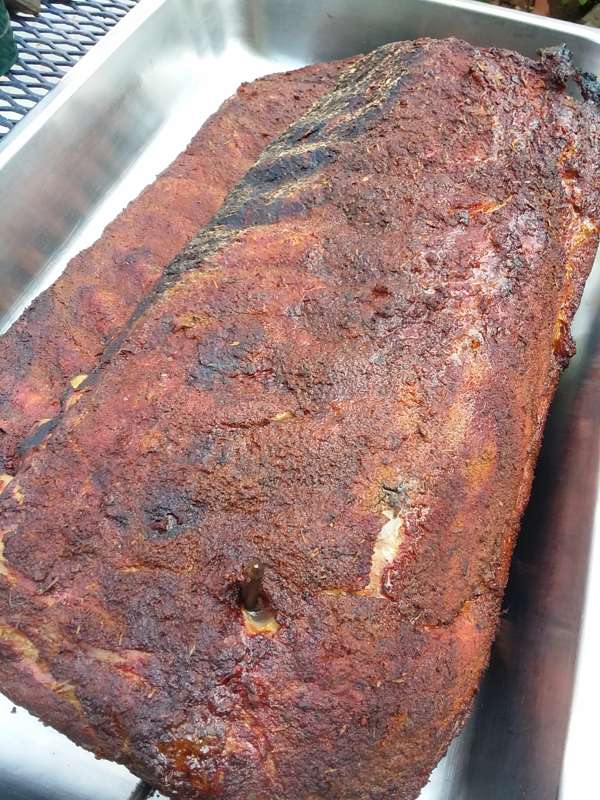 Both the flat/point of a corned beef brisket that'll be used for sliders tomorrow. Using some whiskey oak pucks for my Bradley.
