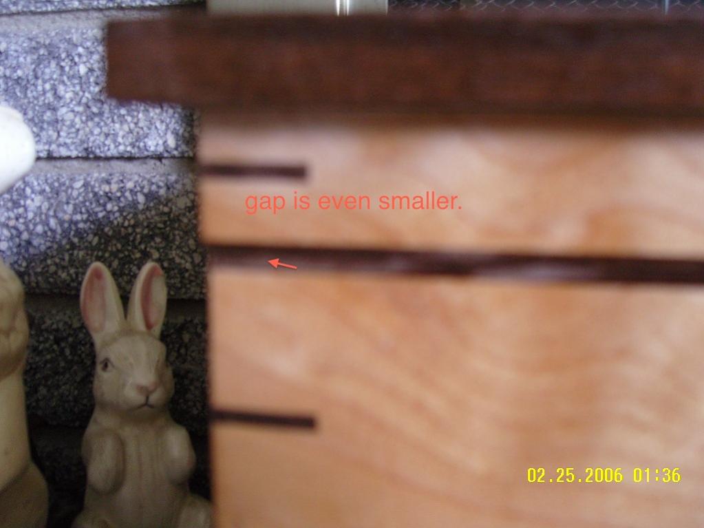 You will see in the last picture the gap at one end can hold a credit card and DL. the flash light show the gad as well. The other side is tight. The picture with the credit card and flash light showing the chipped wedge sill is a major concern I have and could be minor to other. Point is I paid a lot of money to have a custom humidor to be made. I could shave gone with something else for around the same price and not had a problem. If I did the company would have taken it back and replaced with a good unit.