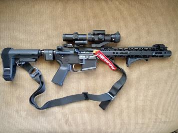 Just finished this AR pistol built in .300 BO. 10.5”, Aero M4E1 lower, radiant charging handle and folding stock