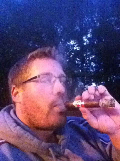 Yet another bad cell pic. Smoking a La Gloria Cubana Serie R and pretending to work!