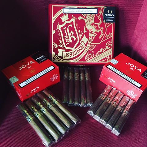 Box of Jas Sum Kral lancero, fiver of Jas Sum Kral Toro, Lonsdale and Robusto and two boxes of Joya Red Half Corona.