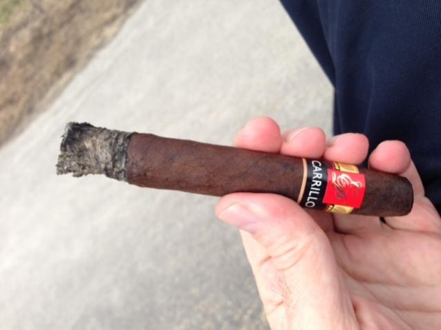 EP Carillo (?maduro Predilectos Torpedo) sent to be by DMK. (Thanks man!) A really nice smoke - full bodied - reminded me of those chocolate coated espresso beans. Uncle Nic gave me a beating for smoking it too fast.