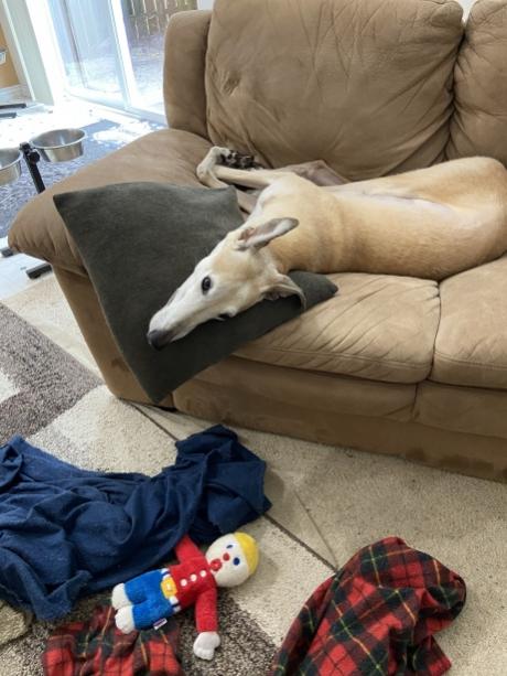We absolutely do not spoil our dogs. Here's one of Jonas, 8 y.o. retired racing greyhound.