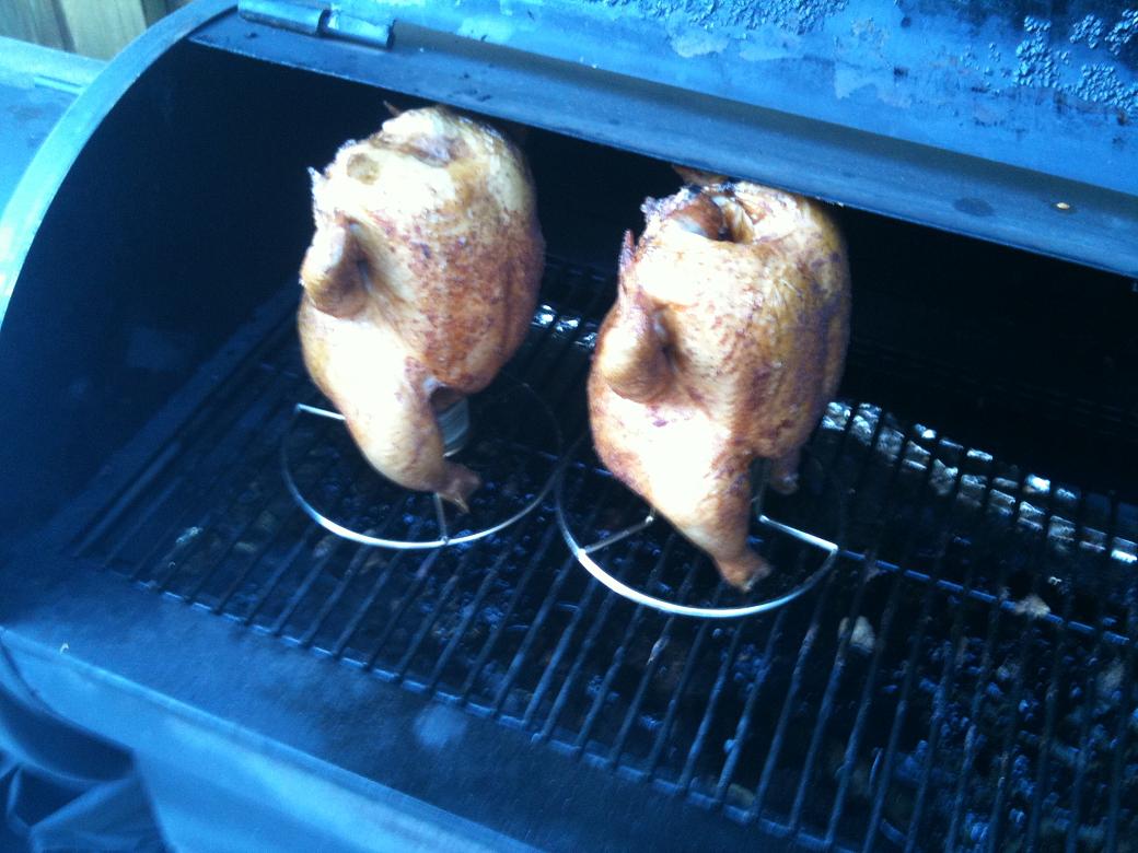 Did some beer can chickens the other day, came out pretty good must say. Not quite done yet in the photo.