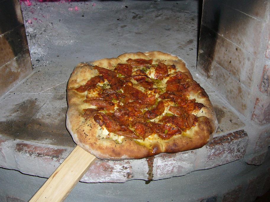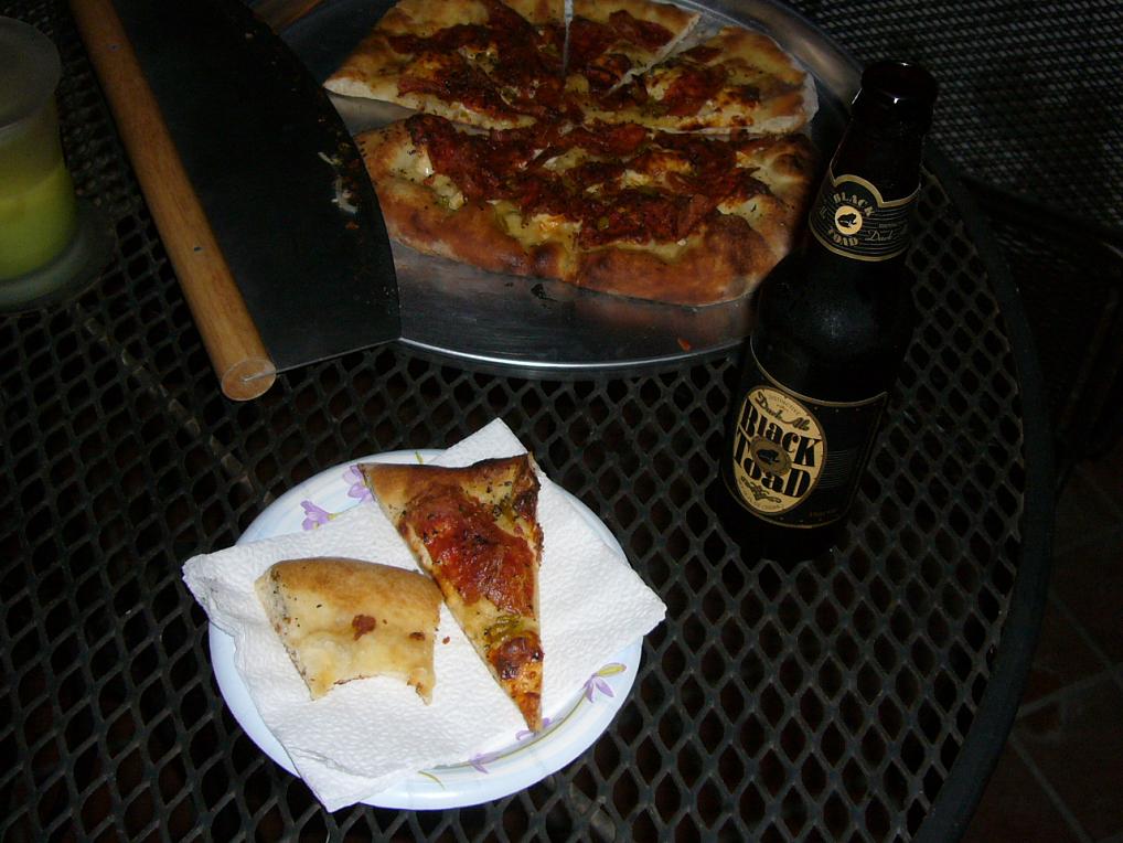 I had almost the whole pie to myself with a couple of bottles of Black Toad dark ale. The pizza and ale were the bomb! The crispy pepperoni did the trick.