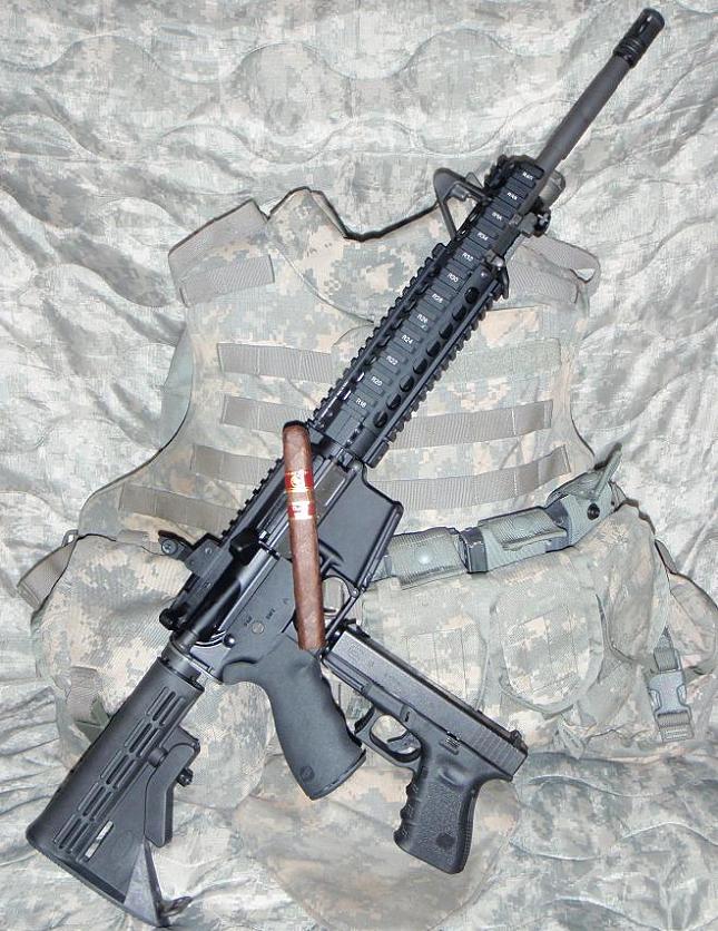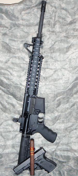 As far as the AR goes, it is something I put together. It is an LMT 16" carbine Upper, i then got an LMT lower, with their part kit. Kit included a two stage match trigger, and the Hogue grip. BCG is also LMT. The rail system is a MI extended carbine Free Float, and the BUIS is the MI same plane. Didn't intend it to basically an MI/LMT build, but those are the parts I got for the money. It is my baby, 1 MOA accurate.