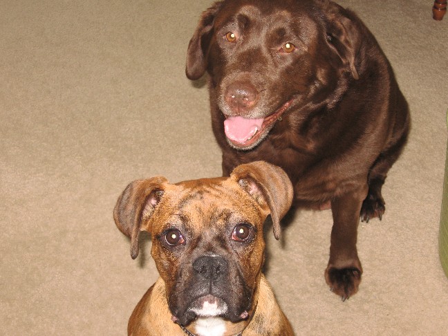 Here is our Bailey right behind the most rotten/loving boxer you've ever meet.