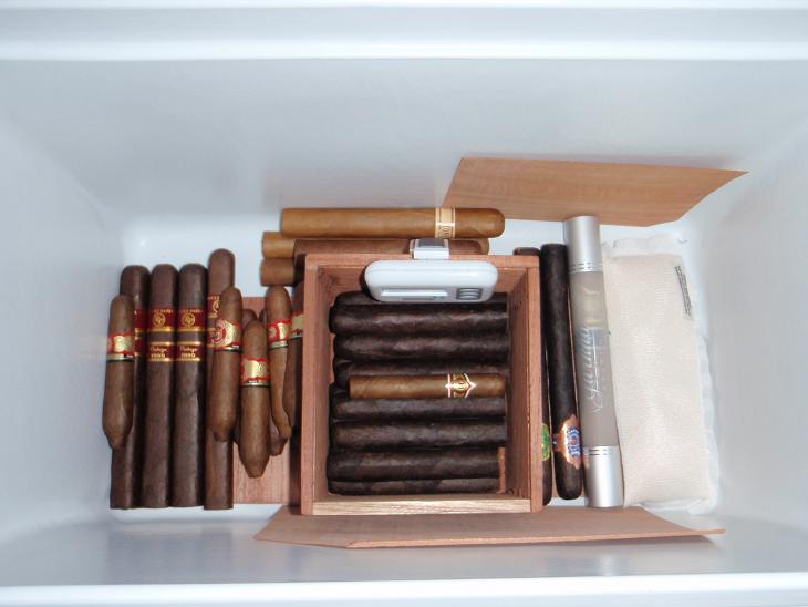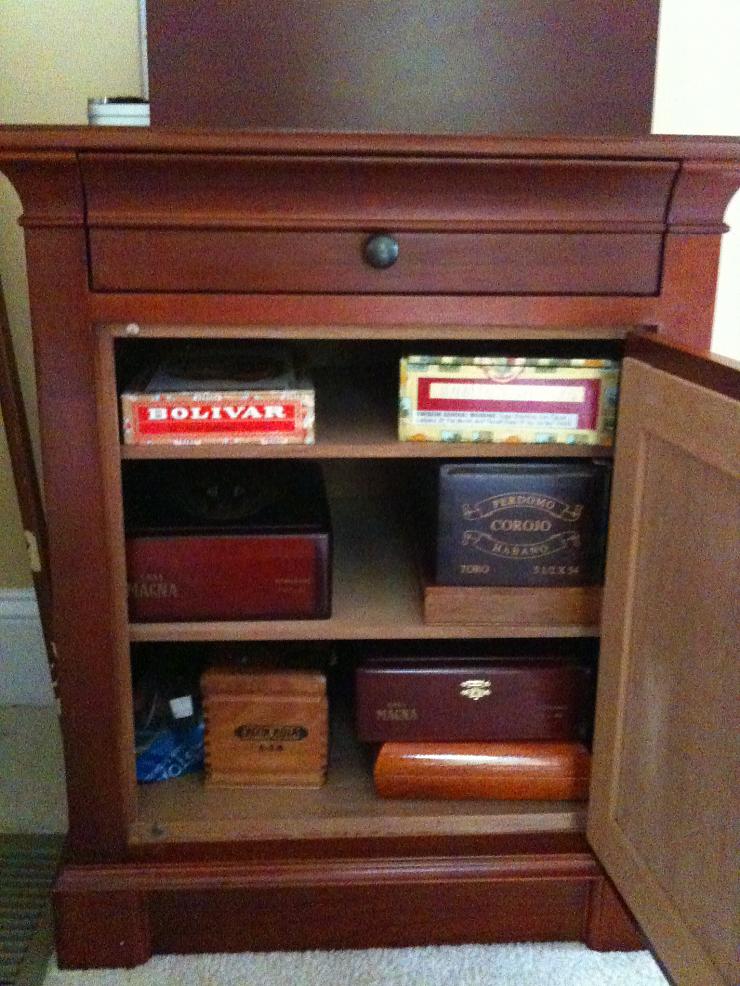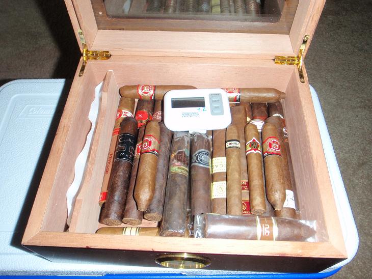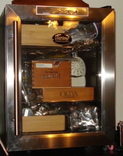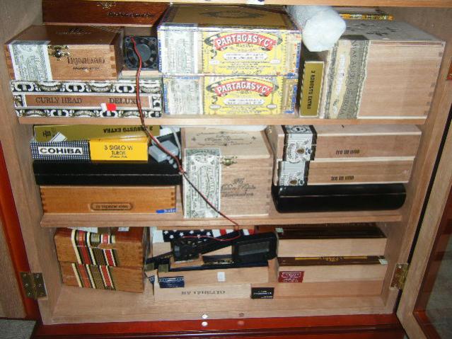 Hello everyone. My humidor is a Trivoli from Tampa Humidors, with a Cigar Oasis XL, a pound and a half of Heartfelt beads, and two Hydra Fans for air circulation.