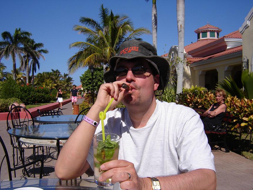 Here's one of me on vacation this past winter on ISOM, first cigar and first mojito