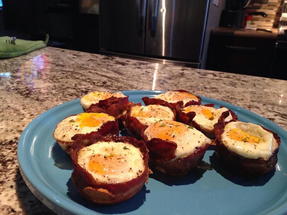 Breakfast for dinner. Bacon and egg cups. Haven't made them in ages.