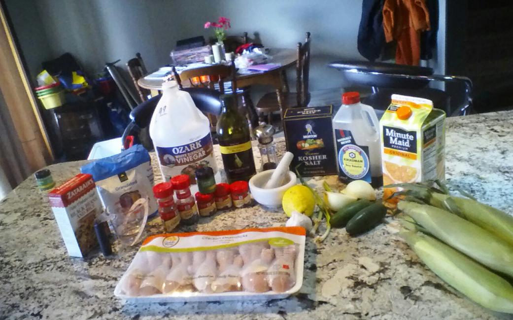 Jamaican Jerk chicken drumsticks. They hit the marinade about 2 hours ago. Trying a new Method this time. I normally do boneless skinless chicken breasts with this recipe. This time, because of the drumsticks, I peeled the skin back before tossing into the marinade. My guess is they are going to be awesome. Especially with the corn (contemplating blistered corn) and zatarain' s black beans and rice.