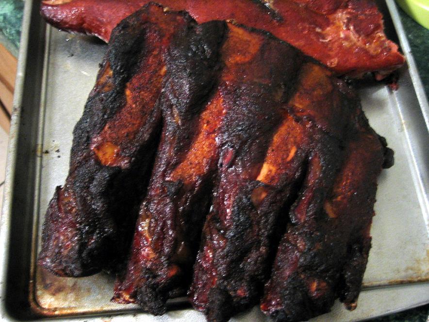 I cooked up a rack of babys and a half-rack of dino bones last night, wanted to give my man Bill86 some ribs.