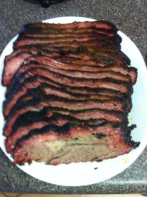 I amaze myself....here is the brisket sliced after a 2 hour hold in the cooler.