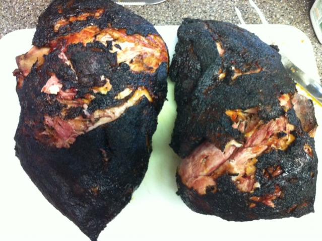 Starting to lose patience with the 2 butts on the smoker. I just hit the 13 hour mark and they're still not quite 190 yet. Decided to throw on another chimney worth of hot charcoal as my temps seemed to be struggling just a bit. This should give me enough to get over the hump I reckon.