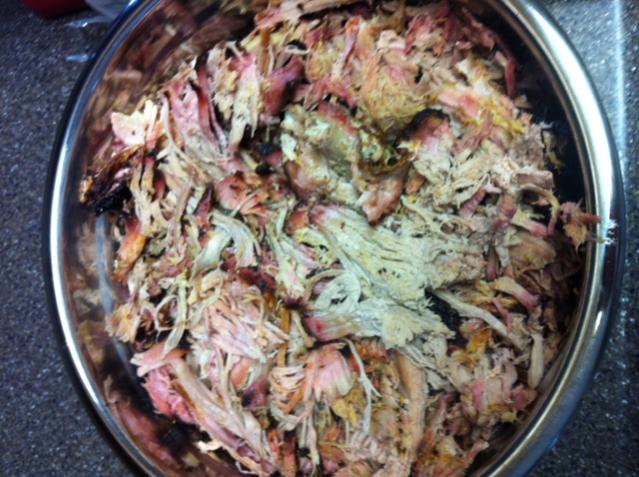 Butts are in the cooler to rest for a couple of hours as temps seemed to finally hit the 200 mark. Tested with the fork and it was shredding on the smoker. In the house, I went to pick it up with both hands and it fell into pieces.